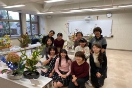 毎週水曜日のお昼休みから4 限の好きな時間に、めぐみ荘で和から洋まで楽しくお花を生けることができます。現在部員は5 名で家元教授から丁寧に教えていただけるため、初心者も安心して成長できます。履歴書資格欄に書ける師範取得も学割価格です。