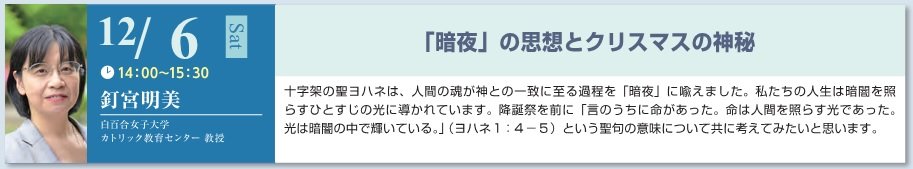 12/6(土) 公開講座、宗教講座「創造への道」を開講いたします。申込受付中です。みなさまのご参加をお待ちしています。