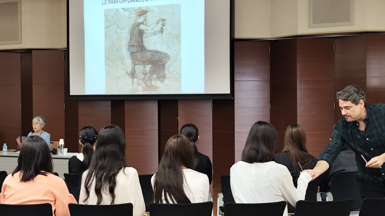 10月9日(木)本学クララホールにて、白百合女子大学フランス語フランス文学会主催で、調香師のダニエル・ペシオ氏による講演会「香水の魔法 ― 香水の歴史と調香師の仕事」が行われました。