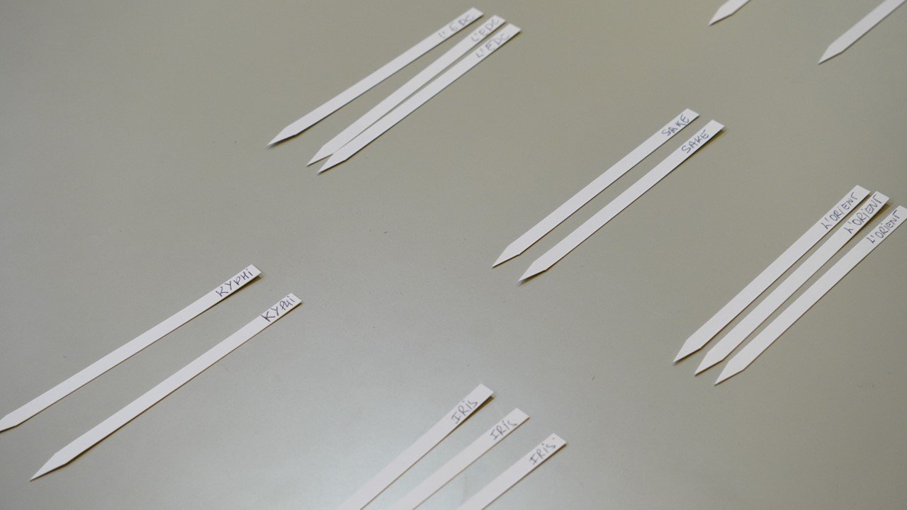 講演ではまず最初に、古代エジプトから現代までの香水の歴史について、それぞれの香りを実際に体験しながら解説いただきました。香水と聞くと、小瓶に入った液体を想像しますが、古代エジプトで使用されていた香水は「キフィ」とよばれる固形の香水だったとのこと。そのほかにも、古代ローマ時代にはアヤメやオレンジの花が使用され、中東では蒸留の仕組みが誕生するなど、香りはどの時代でも人々の暮らしと密接に結びついていたことが分かります。