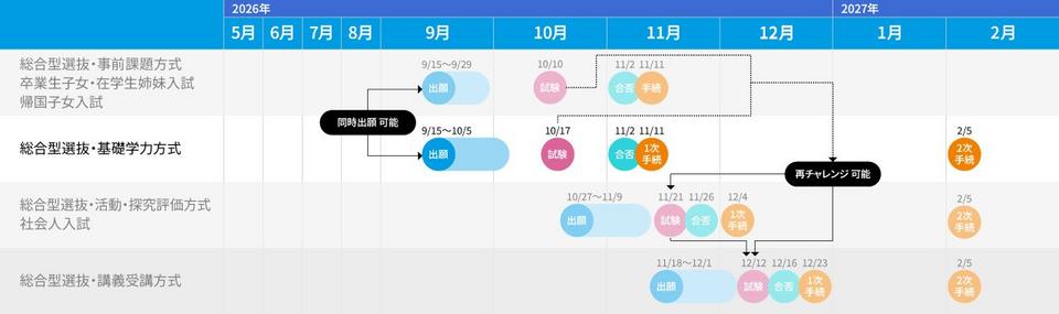 ※「総合型選抜 事前課題方式」と「総合型選抜 基礎学力方式」を同時出願することで、検定料が10,000 円割引となります。