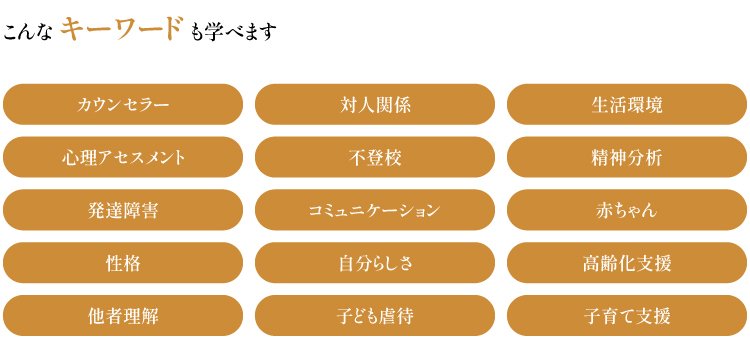 人が生涯発達する中で生じるさまざまな問題の解決と支援のために、専門家として相談に応じることができるよう必要な知識とノウハウを養います。