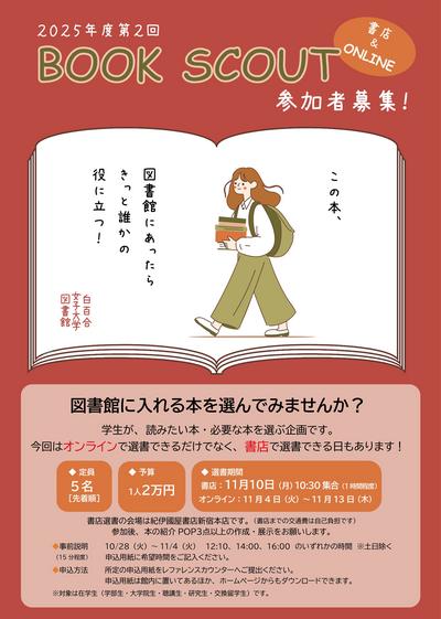 ブック・スカウトは、学生が1人2万円の予算で、図書館に入れる本を選ぶ企画です。