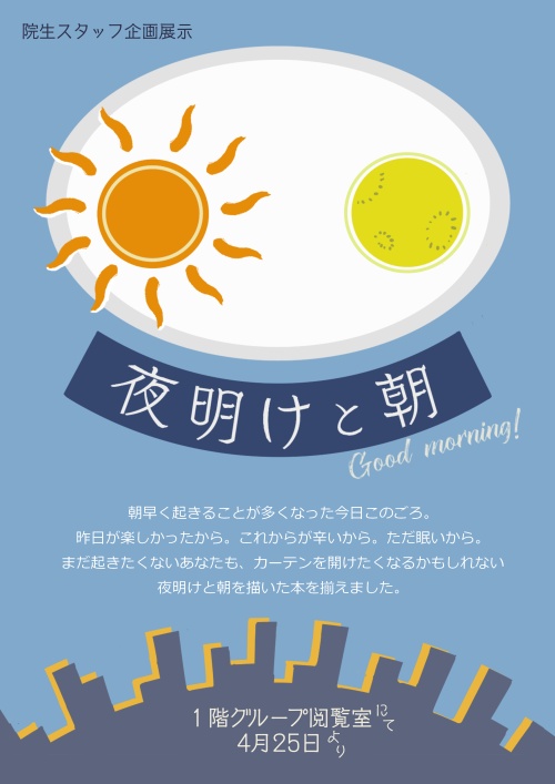 2022年度最初の院生スタッフ企画展示は「夜明けと朝」をテーマに、