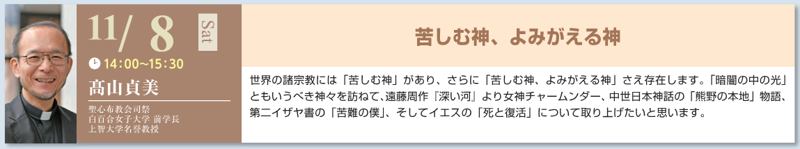 11/8(土) 公開講座、宗教講座「創造への道」を開講いたします。申込受付中です。みなさまのご参加をお待ちしています。
