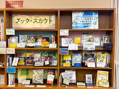 年に2回開催されるブック・スカウトでは、学生が読んでみたい作品や、研究に使いたい資料、書店で目についた話題の本や新刊など、多種多様な本が選ばれます。紀伊國屋書店新宿本店はビル一棟がすべて書店という大型店舗です。参加した学生は、各フロアを回り、たくさんの本の中から選書していました。また、今回は、授業などで現地へ行けない学生のために、インターネット上の選書サービスを用いたオンライン形式でも実施しました。