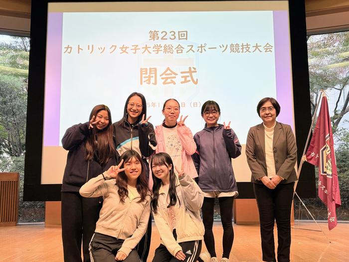 11月15日(土)、16日(日)、聖心女子大学(東京都渋谷区)にて「第23回カトリック女子大学総合スポーツ競技大会」が開催され、本学からは硬式庭球部が出場しました。本大会は、スポーツを通してカトリック女子大学の親交を図るため、毎年開催されている大会です。聖心女子大学、京都ノートルダム女子大学、ノートルダム清心女子大学、本学の4大学の学生が参加し、スポーツを通じて交流を深めました。