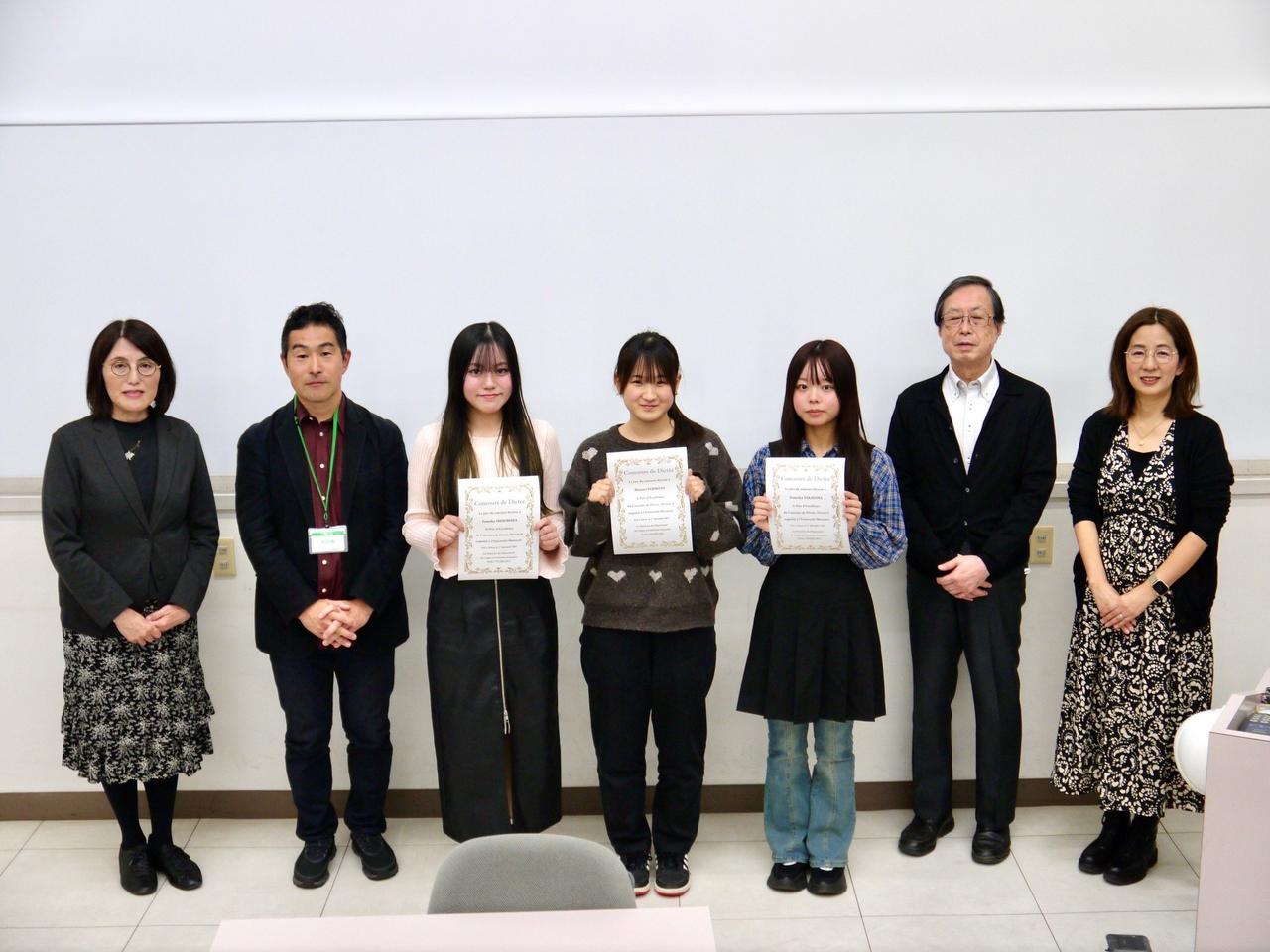 最優秀者には、学科から賞状が、協賛の白水社から「白水社賞」として『まいにちふれるフランス語手帳』と、この手帳の監修を務めたトリコロール・パリさんの特集が組まれた『ふらんす』2025年・11月号が授与されました。また受験者全員にフランス製のすてきなノートが贈られました。