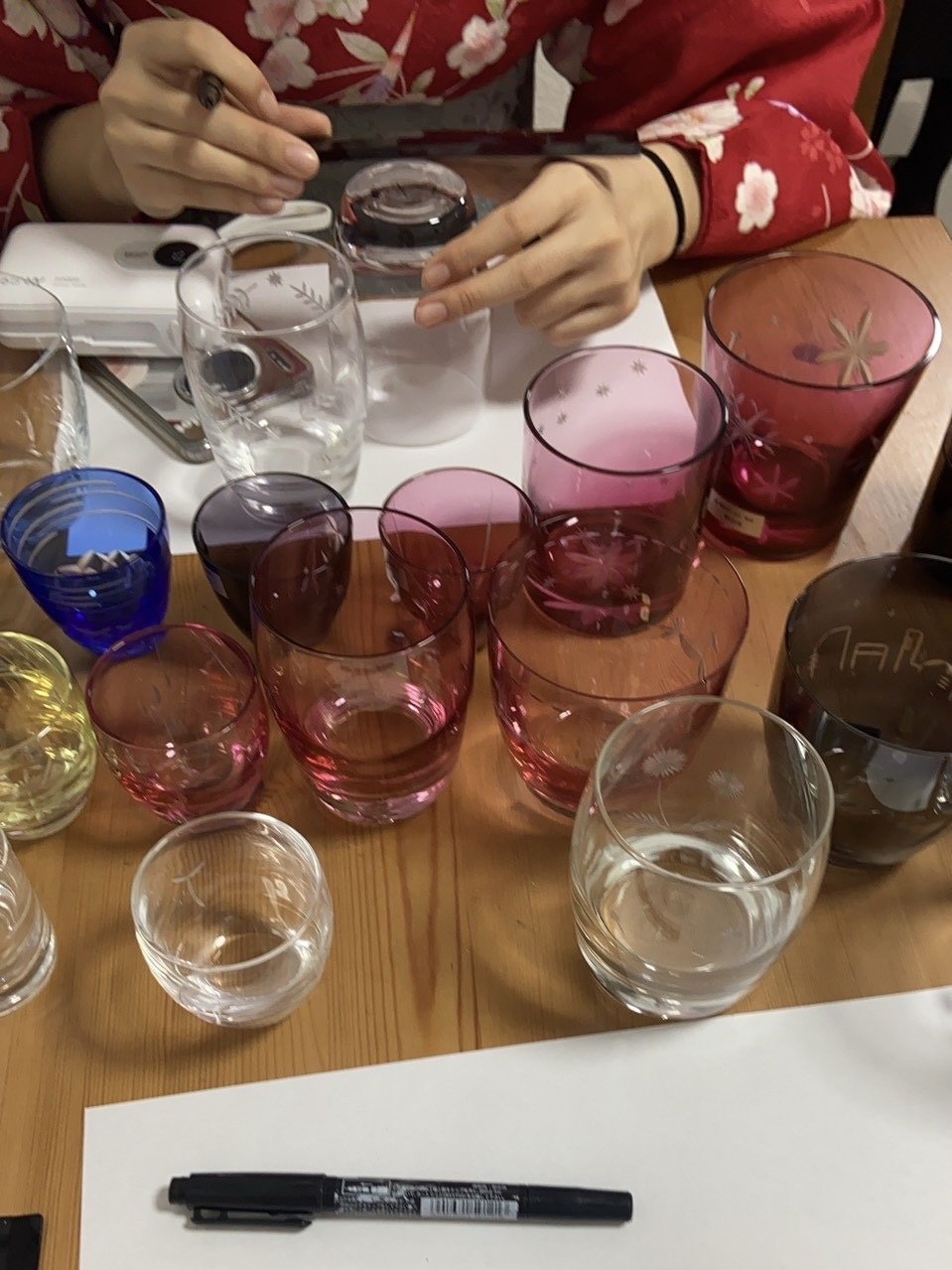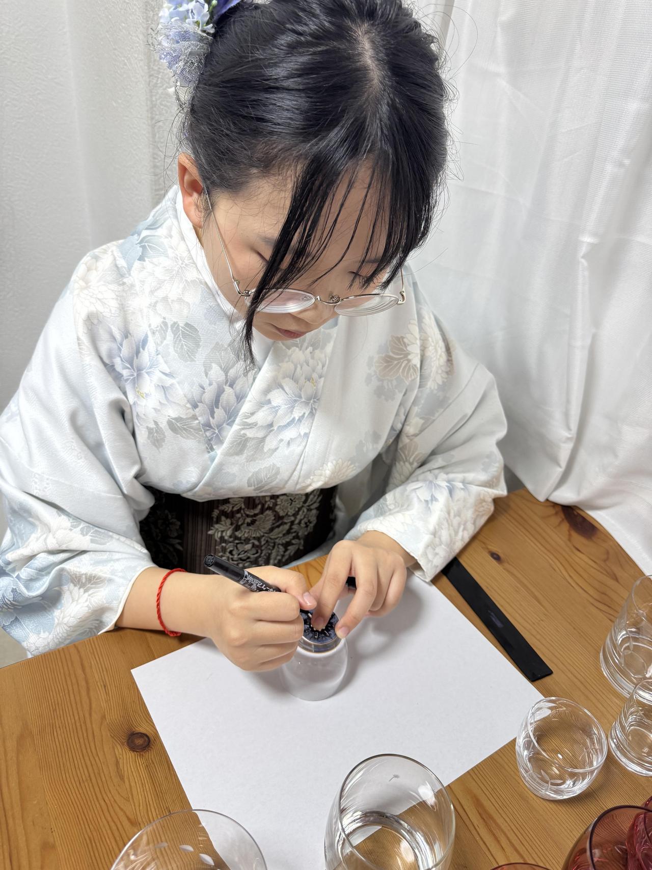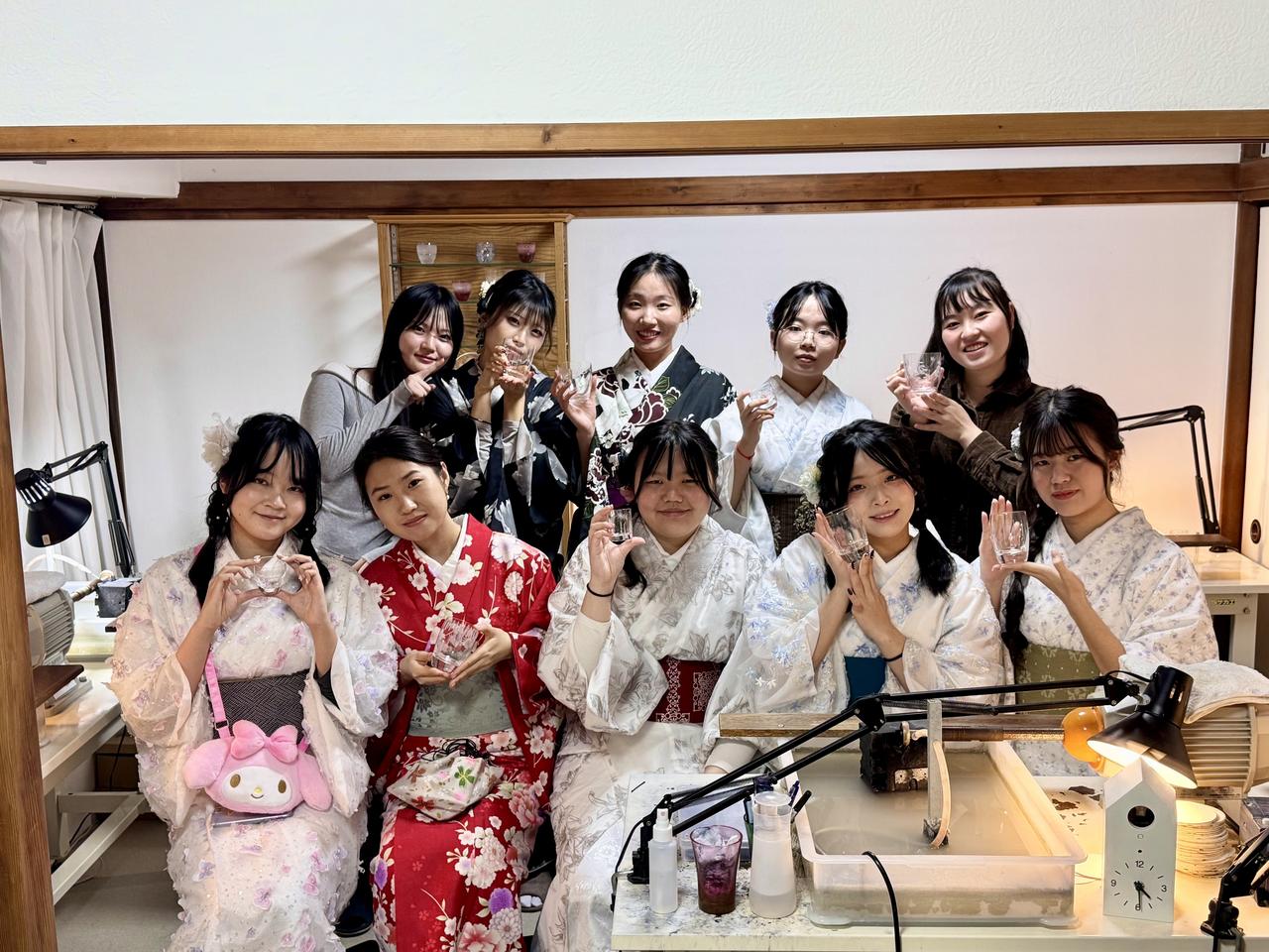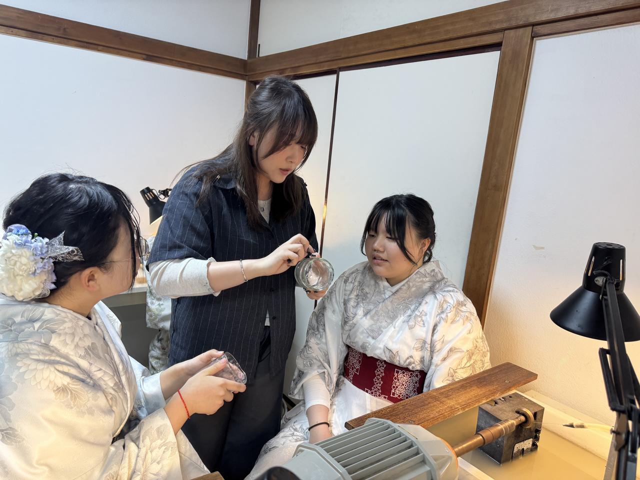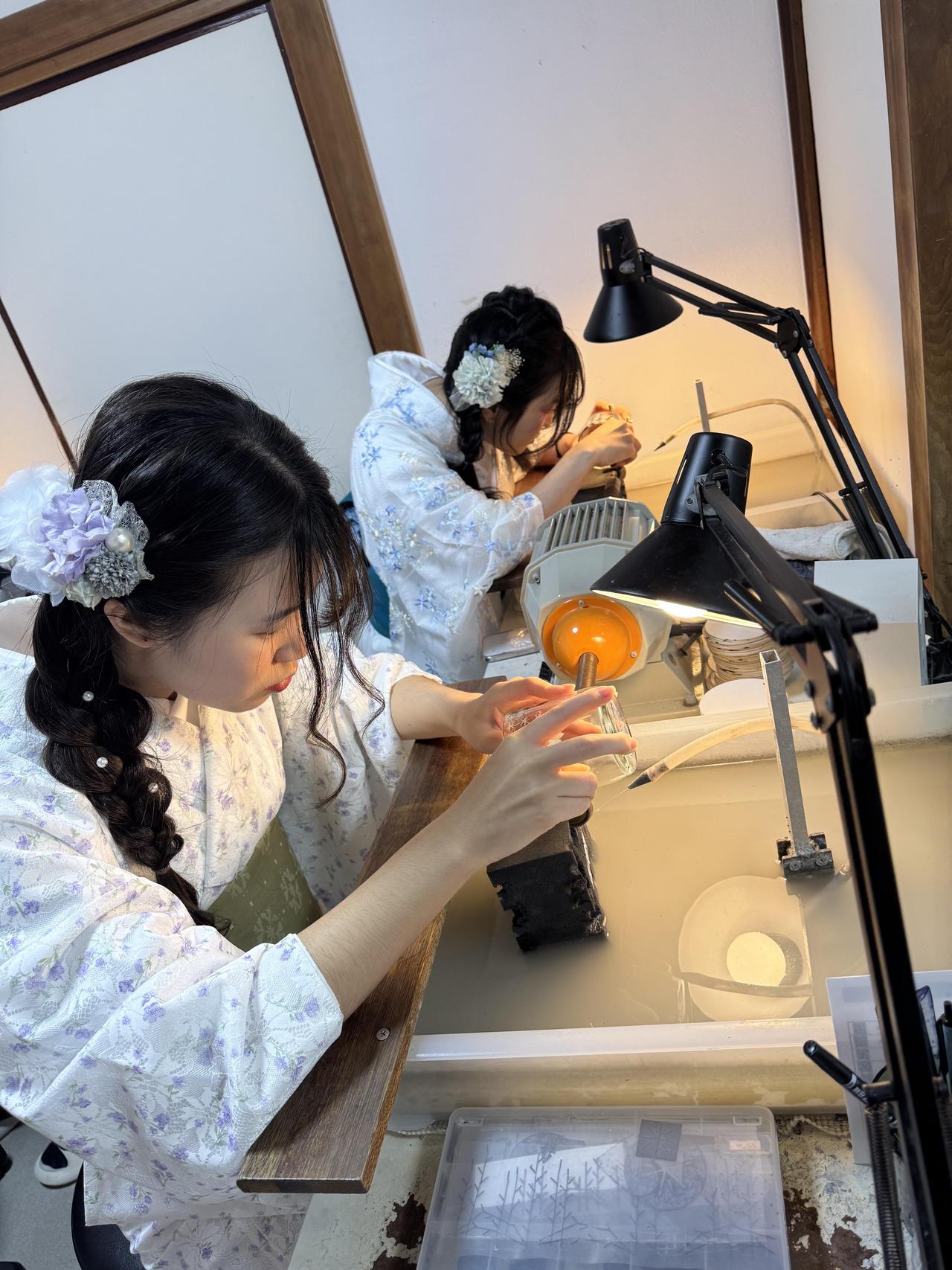 最後には切子細工体験にも挑戦しました。ガラスに模様を刻む作業に真剣に取り組み、それぞれの個性がつまった作品が完成しました。