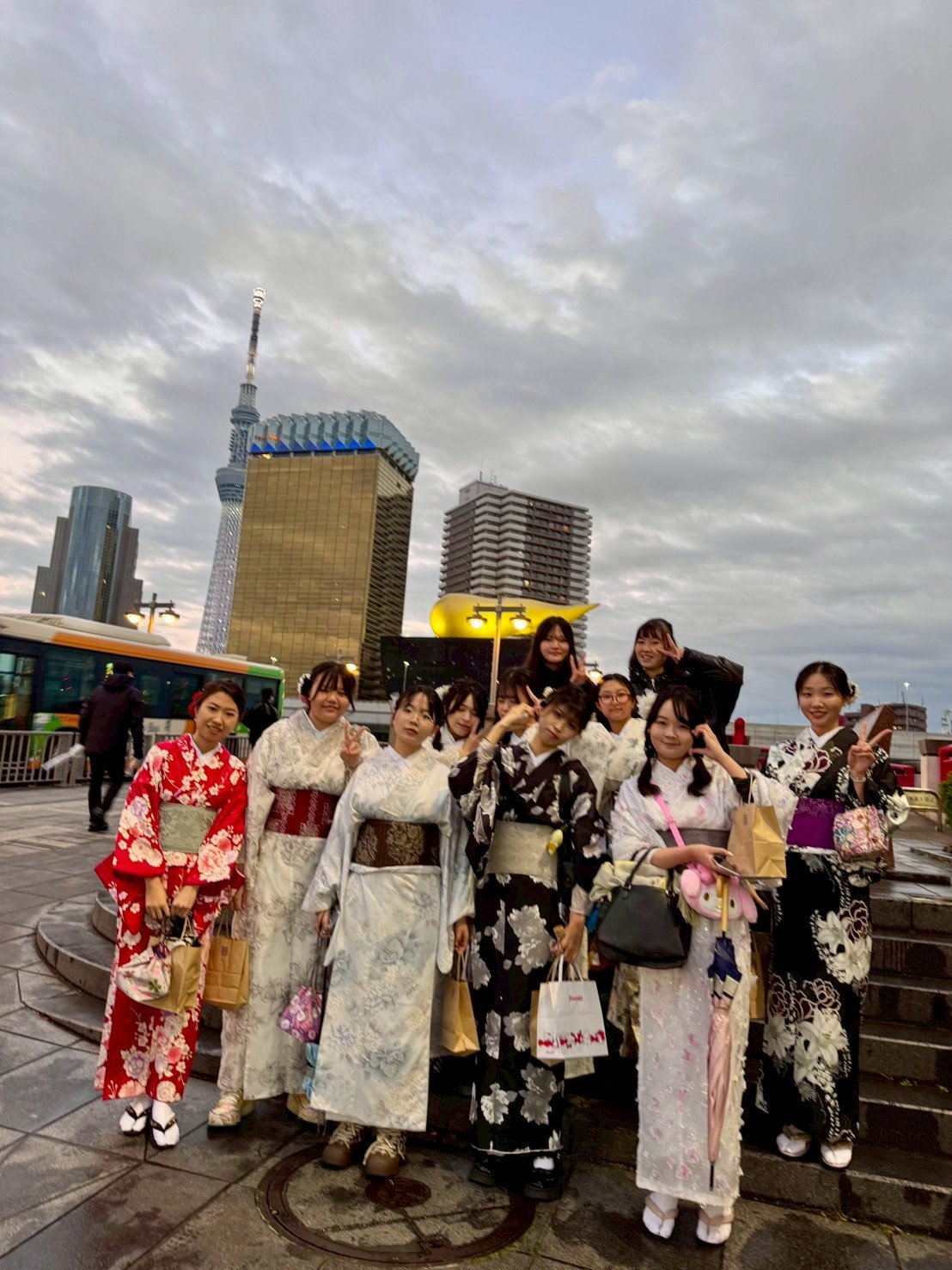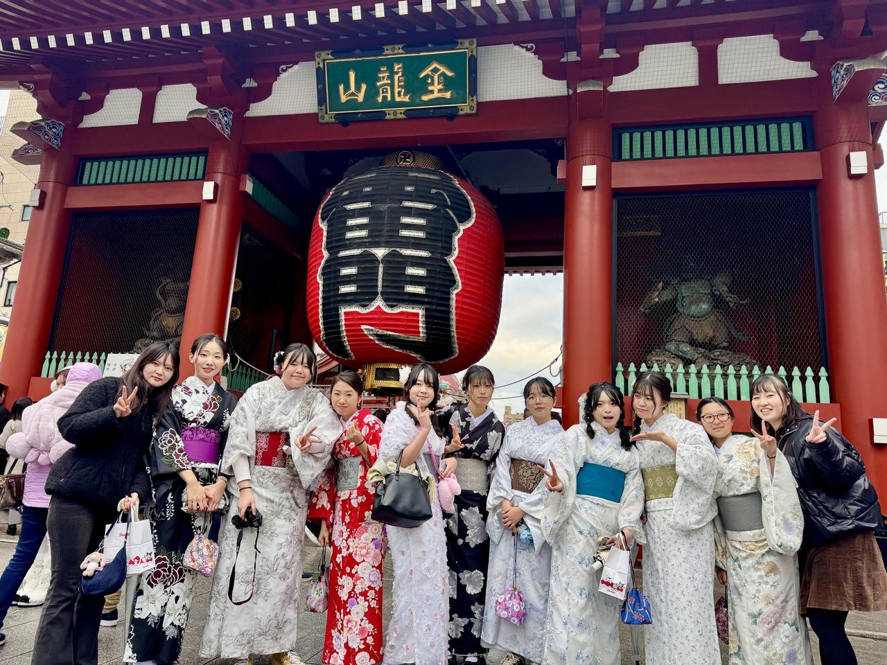着物姿のまま、浅草寺や仲見世通りを散策しました。江戸時代から続く仲見世通りでは、日本の歴史や伝統を感じながら、人形焼きを味わう場面もありました。留学生にとっては慣れない着物でしたが、浅草の街並みの中で、日本文化を身近に感じる時間となりました。