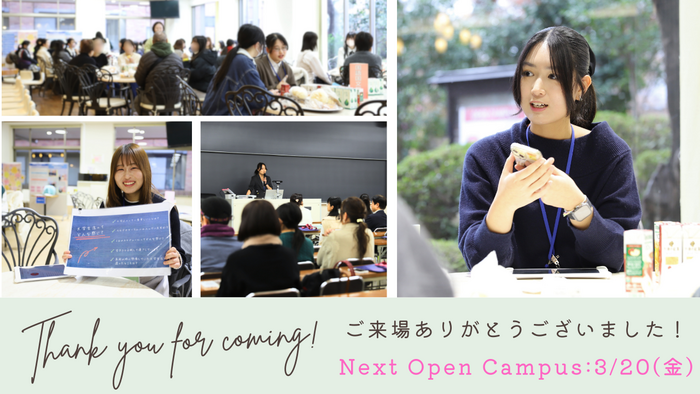 次回のオープンキャンパスは2026年3月20日(金)。大学紹介や入試ガイダンスに加えて、各学科の学び紹介と模擬授業を掛け合わせた『学科別ガイダンス』の開催を予定しています!