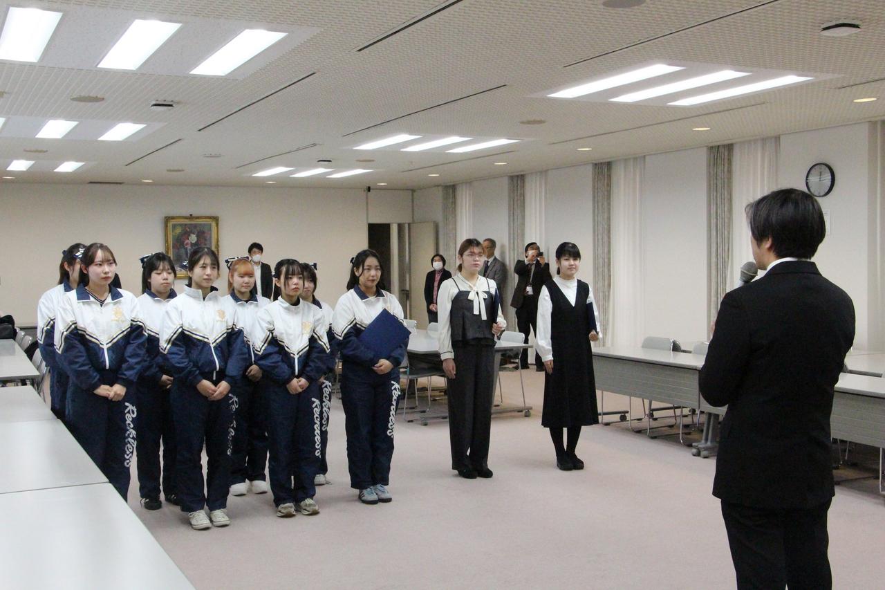 この度は、チアリーディング部として学生活動奨励賞を受賞させていただき、大変光栄に存じます。約1年前、4人で活動をスタートした当初は、このような賞をいただけるとは想像もしておりませんでした。1年生を迎え部員全員が未経験からのスタートではありましたが、多くの方々に支えていただきながら大会入賞を果たすまでに成長することができました。これからも多くの皆さまに元気・勇気・笑顔をお届けできるよう、部員一同精一杯活動してまいります。最後になりますが、この場をお借りして、日頃よりお世話になっている顧問の先生、学生生活課担当職員、コーチ、保護者のみなさま、そして応援してくださるすべての方々に心より御礼申し上げます。