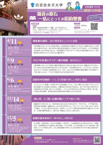 2026年度も『公開講座』、『宗教講座ー創造への道』を開講いたします。