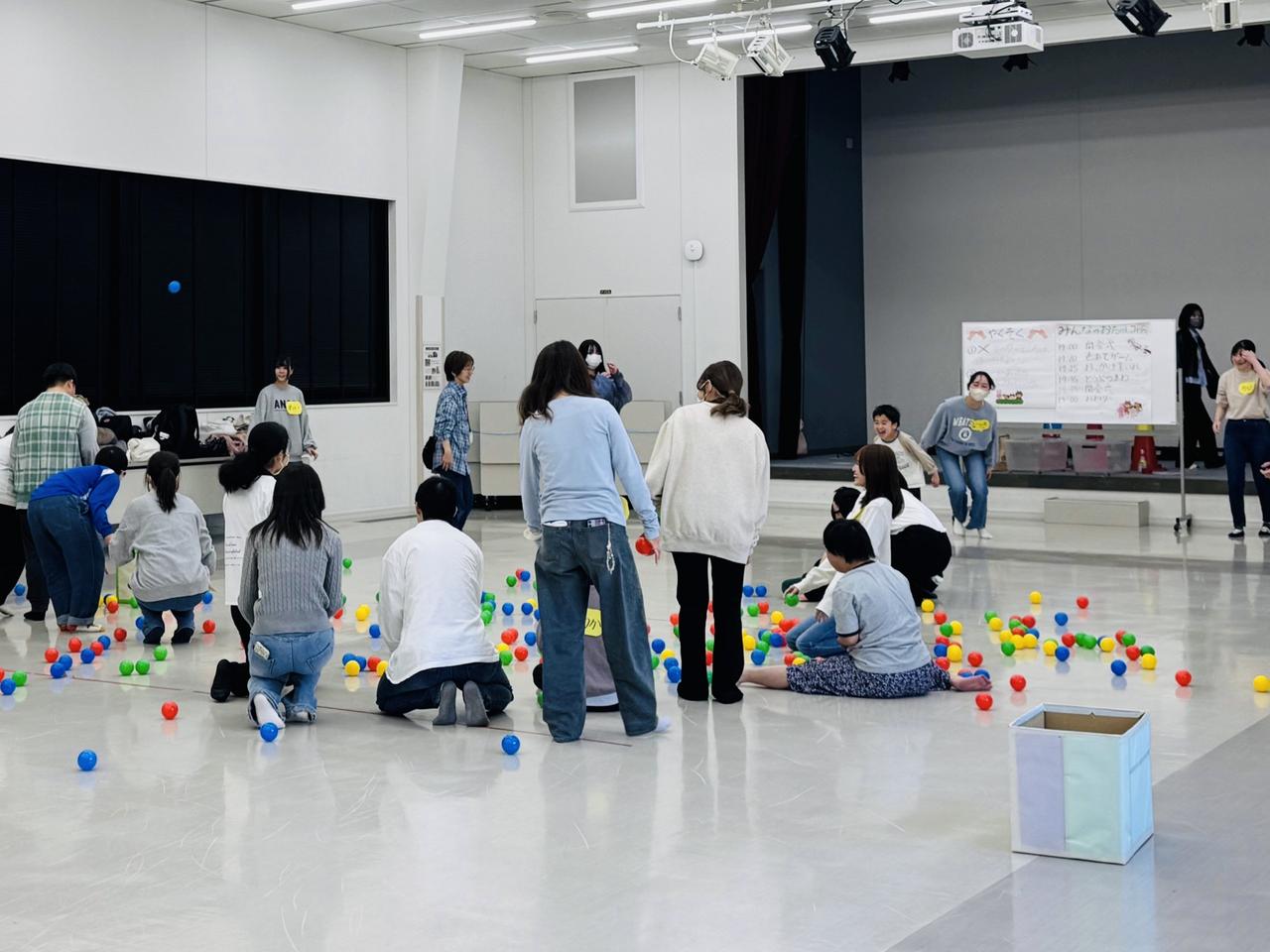 当日は、参加した児童・生徒さんたちと学生がペアやグループになり、「色あてゲーム」「おっかけ玉入れ」「どうぶつまねっこ」「ダンス&カラオケ大会」などで楽しいひとときを過ごしました。
