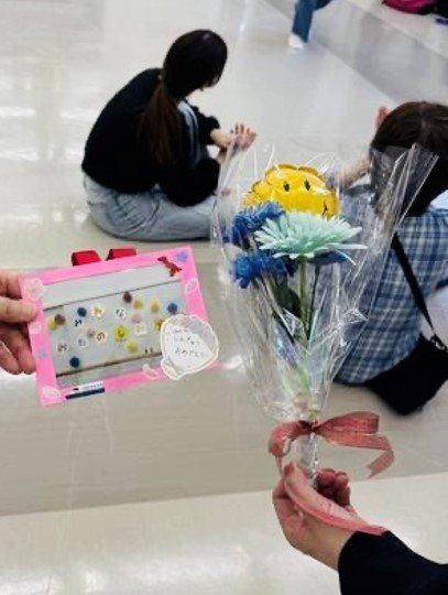 閉会式では、参加者の皆さんの進級・進学をお祝いし、学生たちが一つひとつ心を込めて手作りした《花束》と《フォトフレーム》をプレゼント。手渡された時の子どもたちの嬉しそうな笑顔がとても印象的でした。